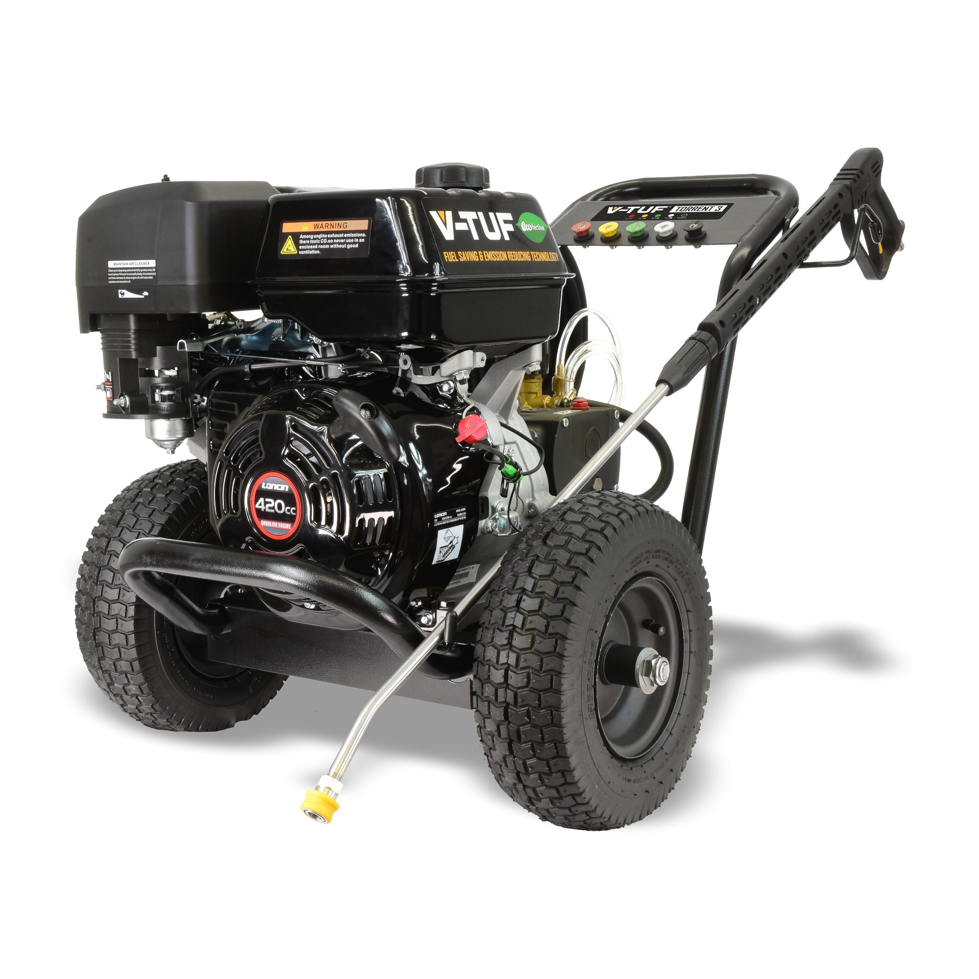 It’s all muscle & great results! The V-TUF TORRENT 3 – 4000psi (275 bar) 15 L/Min Trolley Mounted 15 HP Petrol Pressure Washer is one of the most Compact 4000psi petrol pressure washers on the market.